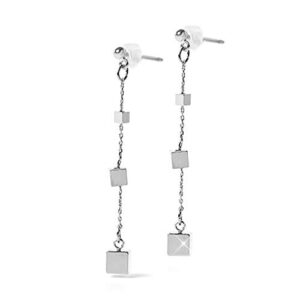 PLUSTER チェーン ピアス チタン 金属アレルギー対応 揺れる ロング キューブ ホワイトゴールドカラー レディース [専用ポーチ付き] 人気 誕生日 プレゼント ジュエリー プラスター
