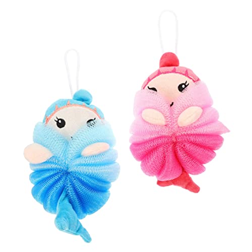 OUNONAのバススポンジ2個セットは、可愛いカートゥーン柄で柔らかな泡立ちが特徴。肌に優しいピーイー素材を使用し、角質ケアにも最適なボディ用品です。