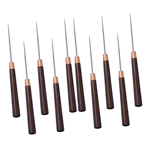 AKOOSYの10個セットの細柄千通しは、革細工や靴修理に最適な穴あけツールです。木製ハンドルで使いやすく、補修作業やクラフトに役立ちます。