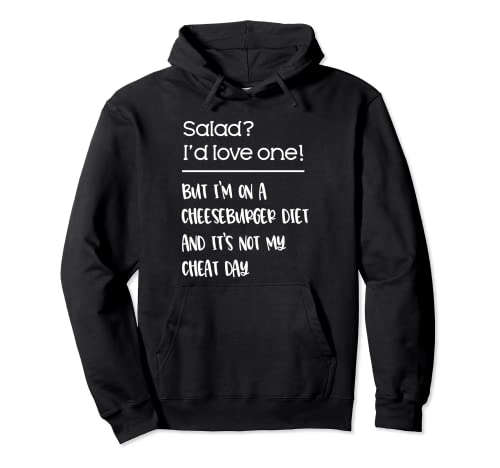 ダイエット中に見逃せない!面白いバーガージョーク入りパーカー。チートデーには笑顔でハンバーガーを楽しもう。食玩感覚のユーモアたっぷりの一品!