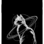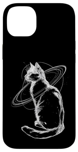 ラインアートで描かれた惑星とリング付きの猫が特徴の宇宙ミニマルスタイル。iPhone 14 Plusにぴったりのスタイリッシュなスマホケースです。