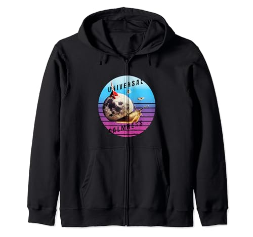 宇宙をテーマにしたカタツムリデザインのジップパーカー。星空や月を感じる普遍的な静けさを表現。柔らかい素材で快適な着心地。
