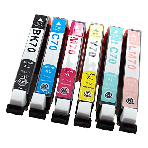 EPSON EC6CL70L 増量タイプ互換インクカートリッジ、6色セット(BK/C/M/Y/LC/LM)。純正と併用可能。対応機種:EP-306/706A/775A/776A/805A/905Aなど。