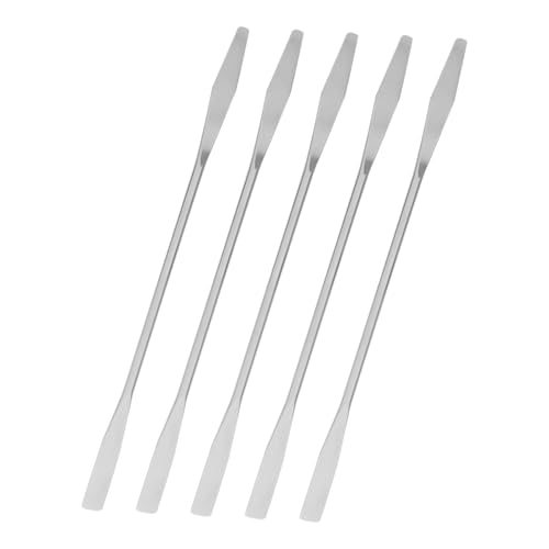 Beatifufuのステンレス製化粧用調色棒は5個セット。長柄で使いやすく、ネイルアートやファンデーションの混合に最適。滑らかで衛生的なデザインで、メイクアップを快適にサポートします。