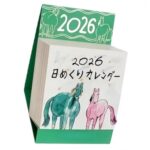 ひめくりカレンダー2026年版、ミニサイズでデスク用に最適。365日分のイラストがかわいく、携帯に便利なデザイン。DIY素材としても楽しめるダークグリーンのカレンダーです。