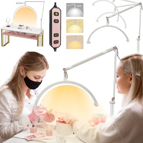 2024年版ハーフムーンライトのスマホホルダー付き、20Wのラッシュランプ。3000K-6000Kの無段階調光可能なLEDスタンドライトで、タトゥーやメイクアップ、エステに最適。