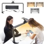 ハーフムーン デスクライトは、LEDで目に優しく、ネイルやメイクアップに最適。3200-5600Kの調光機能、2800lmの超高輝度。折りたたみ可能で、電話ホルダー付きのスタイリッシュなブラックデザイン。