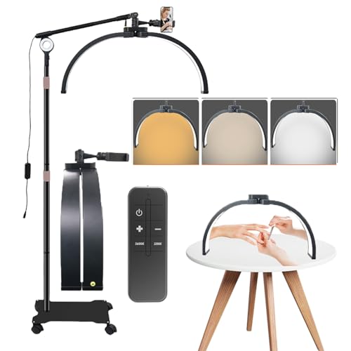 25インチの折りたたみ式ハーフムーンライト2in1ランプ。デスクトップやフロア使用が可能。明るさ調整機能付きで3200k~5600kの色温度。まつげ、タトゥー、ネイルアート、メイクアップ、読書、美容院用に適したLEDライト、カラー: ブラック。