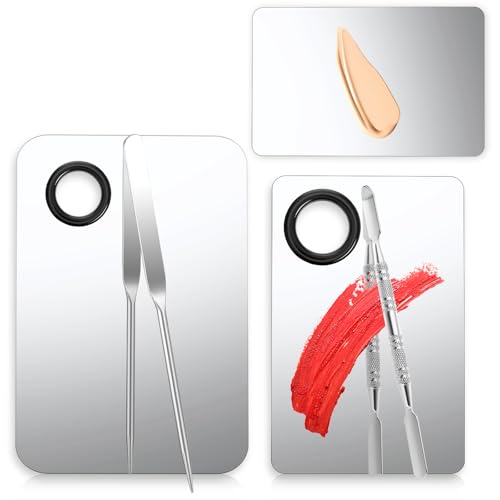 Hpmjz ステンレススチール製の3個セットコスメティックパレット。プロ用のミキシングヘラ付き。化粧アーティスト向け、ファンデ、アイシャドウ、ネイルアートに最適。サイズは異なる3種類。