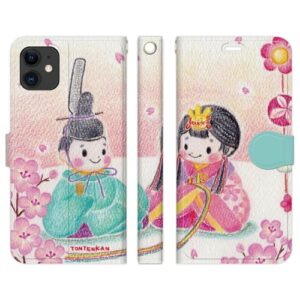 ブレインズ iPhone 16 用 手帳型 ケース カバー ひな祭り日和 TONTENKAN イラスト 色えんぴつ 絵本 tontenkan ほのぼの 色鉛筆 かわいい 女の子 ひな祭り お雛様 雛人形 桃の節句 折りたたみ カード入れ ポケット スタンド iphone16 二つ折り アイフォン