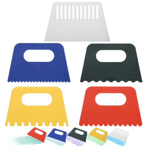 ペイントスクレーパー5個セット。テクスチャードアートに最適なツールで、DIYグラフィティや油絵に便利。プラスチック製で使いやすく、キャンバスや陶器に対応。