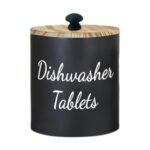 Leefasyの食器洗い機用洗剤ポッドコンテナは、防塵木製オーガナイザーで、カバー付き。カウンタートップや寮、ランドリールームに最適な黒の収納ケースです。