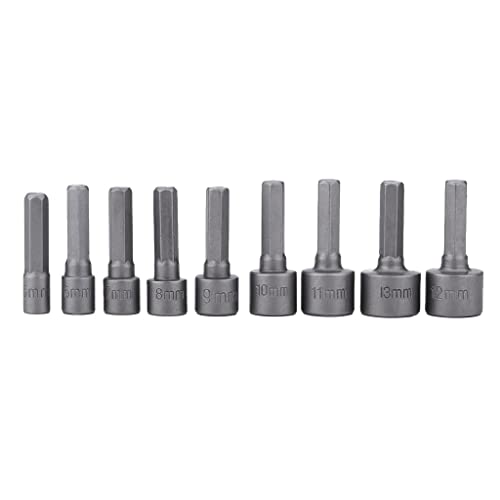 MERIGLAREの六角ビットソケットパワーナットドライバーセットは、9枚のビットが含まれ、家用DIYや自動車作業に最適です。クロームバナジウム鋼製、耐久性に優れています。