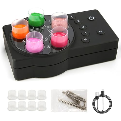 タトゥーインクミキサーは、充電式で自動撹拌を行い、5か所のディスペンサーと8色カップを備えています。速度調整が可能で、アクリル顔料やマニキュアにも対応します。