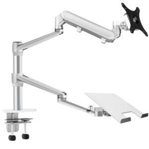 LOE(ロエ) 【日本企画】 デュアル モニターアーム ノートパソコン Laptop 2画面 縦 上下 配置 液タブ ロング 組み立て簡単 LOLL3L 白 x シルバー 1台