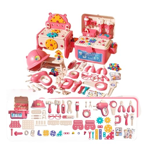 Tcrciuk木工おもちゃの工具セットは、218ピースのピンクセットで、電動ドリルや知育玩具が含まれています。収納ボックス、椅子、帽子セット、アップグレードツールも付属し、お子様へのDIYギフトに最適です。