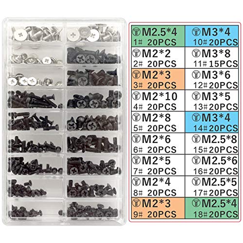 AkuolyノートPC用ネジセットは、HDDやM.2 SSD固定用の平ネジ355本入り。M2、M2.5、M3のサイズが含まれ、収納ケース付きで便利です。