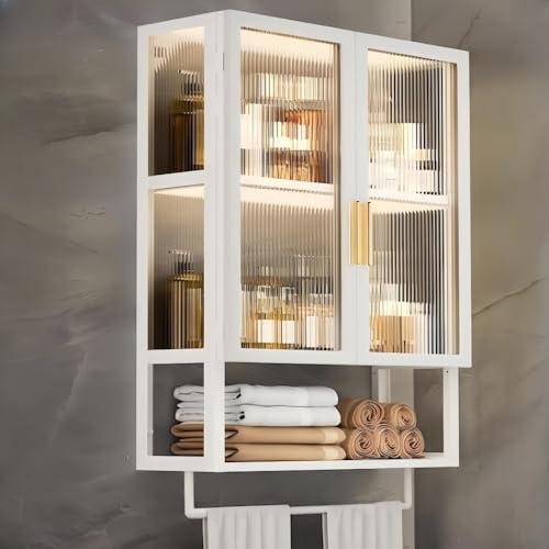 WXQ壁掛け式洗面所キャビネットは、タオルバー付きで北欧風のシンプルでおしゃれなデザイン。大容量収納で化粧品や洗面用品をスッキリ収納。簡単取り付けでバスルームやキッチン、ランドリールームにも最適。(ホワイト, 50*14.5*70CM)