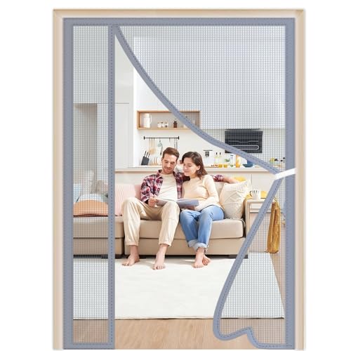 サイドオープニングの網戸カーテンは、サイズ80x210cmで、玄関や窓用の虫よけネット。開閉式の自動式磁気マジックプで取り付けが簡単。通気性に優れ、防塵対策にも最適なグレーのデザイン。