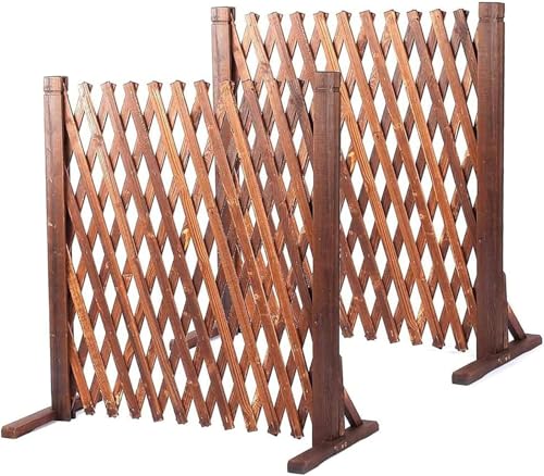 庭の柵として使える天然木のガーデンフェンス。伸縮・折りたたみ式で使いやすく、炭化処理で防虫・防食効果があり、軽量でコンパクト。サイズは70x160cm、ブラウン色で室内外兼用。