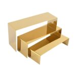 DeeRace 3xライザーディスプレイスタンドは、多目的に使えるホルダーです。ジュエリーやカップケーキ、フィギュア、財布などをディスプレイ可能。ミラーゴールド仕上げでおしゃれな店舗に最適。