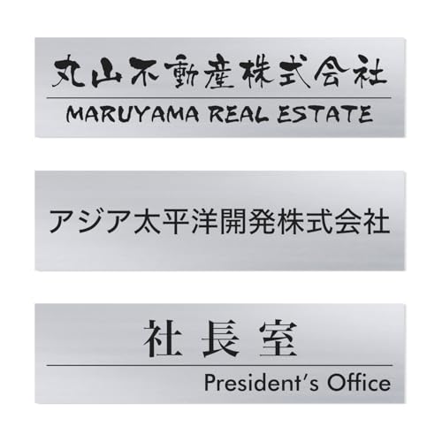 厚さ3mmのシルバー表札。貼るだけの簡単取り付け。超強力両面テープ付で、戸建やマンション、郵便受けに最適。屋外対応のレーザー彫刻で、150X40mmサイズのネームプレートです。