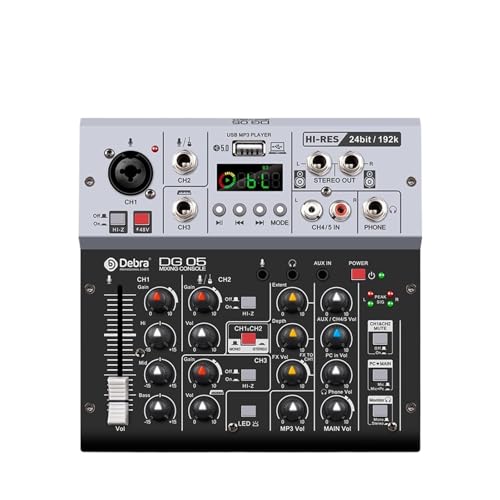 デジタルミキサー DG05 5.0 BTは、5チャンネルの音声入力をサポートし、高品質な音声ミキシングを実現。Bluetooth機能搭載で、ワイヤレス接続が可能。ユーザーフriendlyなインターフェイスが特徴です。