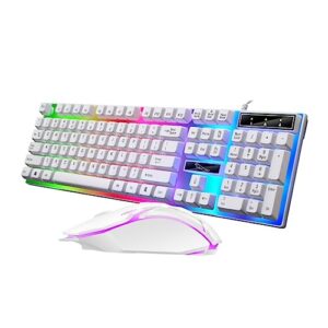 ORFOFE 有線キーボードとマウスセット コンパクトな人間工学デザイン Ledバックライト付き 快適な使用感 ゲームやコンピュータ作業に Usb接続 ホワイト