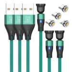 DAIAD USB充電ケーブル マグネット式 7PIN 3本セット データ転送対応 回転構造 LED付き ナイロン編組 Type-C/MicroUSB対応 1m×2 / 2m (グリーン)の高価買取ITEM