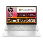 HP Pavilion 15-eh 2023年モデルは、15.6インチIPSタッチディスプレイ、Ryzen 7 7730U、16GB RAM、512GB SSDを搭載。Microsoft Office H&B 2021とWindows 11 Homeが付属し、セラミックホワイトのデザインです。