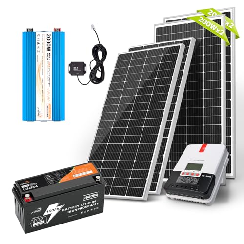 LVYUANのソーラーパネル発電キットは、200Wパネル4枚、MPPT30Aコントローラー、2.56kWhリン酸鉄リチウム電池1個を含み、800W出力で、省エネルギーや災害対策に最適な独立型のDIYシステムです。