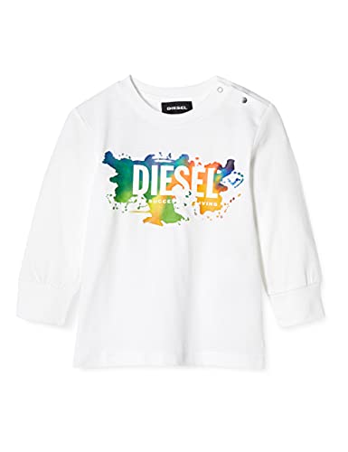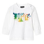 ディーゼルのベビーTシャツは、ユニセックスデザインで18Mサイズ、ホワイトのロンT。プリントロゴとペイントが施され、可愛らしさと個性を引き立てます。