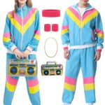 80年代・90年代のレトロトラックスーツ。メンズ・レディース対応で、カラフルなウィンドブレーカー。カップルでのコーディネートにも最適。ブルーのX-Largeサイズ。
