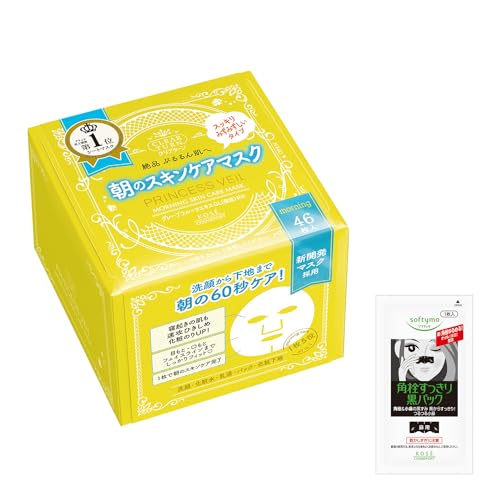KOSEのクリアターンプ Princess Veil Morning Skincare Maskは46枚入り。朝用のフェイスマスクで、肌をすっきりと整えます。さらに鼻用角栓パック1枚が付いており、スキンケアが手軽に行えます。