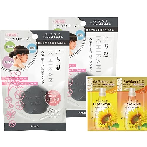 いち髪のヘアキープ和草スティックは、スーパーハードタイプで浮き毛やアホ毛をしっかりまとめ、前髪やおくれ毛のスタイリングに最適です。13g×2セット、おまけ付き。