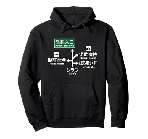 酒酔い道路案内標識デザインのパーカーです。ほろ酔いや酩酊をテーマにした面白いグッズ。酒好きや酒飲みの方におすすめ!ユニークなアイテムで目を引くこと間違いなし。