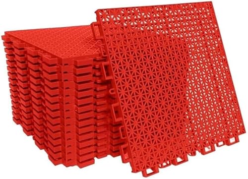 水はけマットは、ベランダやガーデンに最適な32枚セットのはめ込み式床マットです。サイズは25*25*1.2cmで、滑り止め機能付き。プールサイドや駐車場にも使用可能な無地のレッドカラーです。