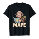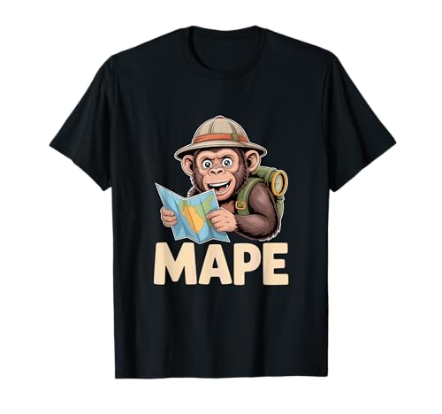 MAPE猿冒険地図探検トラベルジャングルハイキング紀行ツアーTシャツは、快適な着心地とユニークなデザインが特徴。アウトドア愛好者に最適で、冒険心をくすぐるアイテムです。