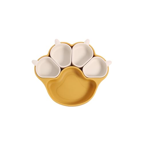 ベビー食器セット 5グリッド 吸盤付き 可分離式デザイン 離乳食プレート ひっくり返らない 猫の爪 かわいいカラフルデザイン 滑り止め シリコン 洗える 食器 離乳食 食べる練習 仕切り 皿 幼児 子供 赤ちゃん お食事セット ギフト プレゼント 出産お祝い (イエロー) [並行輸入品]の製品情報