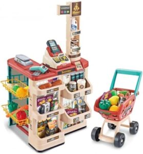 お店屋さんごっこ用のカウンターやレジスター、スーパーマーケットのおもちゃは、子供たちの想像力を引き出します。ままごとの楽しさを体験しながら、買い物の仕組みを学ぶことができます。安全な素材で作られており、楽しく遊びながらコミュニケーション能力も育てられます。