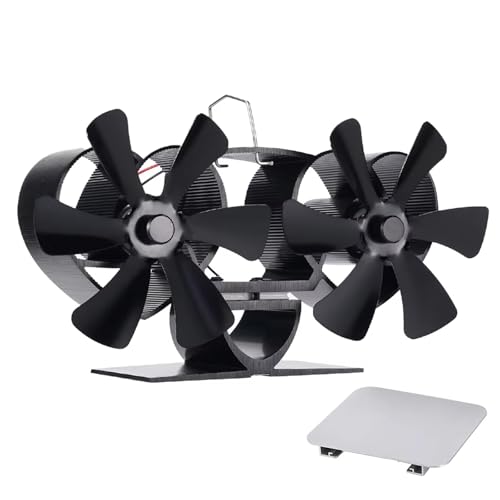 12枚のブレードを持つデュアルモーター薪ストーブファンです。ヒートシールド付きで、燃料を使用せずに暖房効率を向上。様々なストーブに対応し、エコで静音設計。