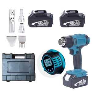 リチウム電池充電式のコードレスヒートガン。温度調節可能で、小型・ポータブル設計。家庭用に最適で、フィルム加工、旧塗装剥がし、塩ビ管の曲げ・溶接に対応。多目的な溶接工具セット。