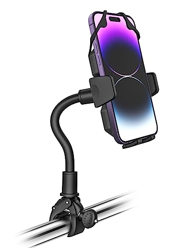 woleyi フィットネスバイク スマホ ホルダー グースネック エアロバイク 携帯スタンド 360度回転 ワンタッチ スマートフォンホルダー トレッドミル すまほほるだー アーム ポール パイプマウント 振動吸収 脱落防止 取付簡単 日本語説明書付き iPhone SE 14 13 12 Pro Max Galaxy AQUOS Androidなど4-7インチ全機種適応の高価買取
