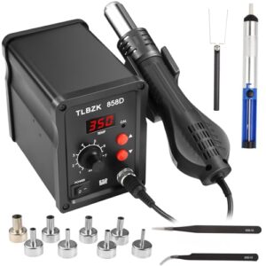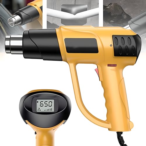 ペイントストリッパーとして使用可能なヒートガンキット。140°Fから1112°Fまでの温度設定、LCDディスプレイ、火傷防止手保護付き。塗料の軟化やプラスチックの曲げに便利な4つのノズルを搭載。