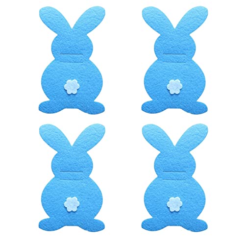 イースターバニー食器ホルダーは不織布製の4個セットで、パーティーディナー用の食器を可愛く整理できます。銀食器は含まれていません。
