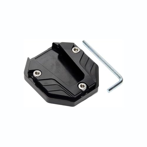 合金製のバイク用サイドスタンドプレートは、汎用でドレスアップ可能なパーツです。ノンスリップ design の延長ブラケットにより、ベース面積が拡大され安定性が向上します。色はブラックで、並行輸入品です。