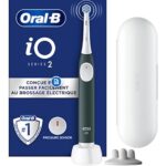 オーラルB電動歯ブラシiOシリーズ2は、替えブラシ1本付きで、3段階のクリーニングモードとマグネットテクノロジーを搭載。トラベルケースと歯ブラシホルダーも含まれ、ブラウン企画/フォレストグリーンのデザインが特徴です。