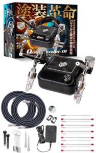 DePes エアブラシ コンプレッサー 【初めてのメイン機におすすめ】口径0.2-0.5mm 小型 軽量 プラモデル (ハイブリッド両手拳銃モデル)