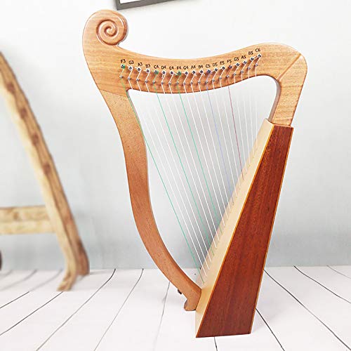 この木製ポータブルアイリッシュハープは、19弦の仕様で、マホガニー製。チューニングレバーとバッグが付属し、レジャー用として最適です。