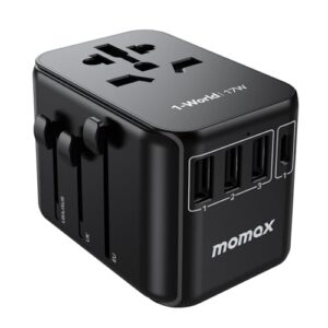 MOMAX 変換プラグ 17W 海外変換プラグ 海外旅行用電源変換プラグ 全世界対応 旅行プラグアダプター 5台同時充電 1*USB-C& 3*USB-A&1*ACコンセント 単ポート15W出力 海外用コンセント 海外電源変換アダプタ C/BF/O/Aタイプ マルチ変換プラグヨーロッパ/韓国/イギリス/アメリカ/オーストラリアなど200ヶ国家対応 便利グッズ ブラック